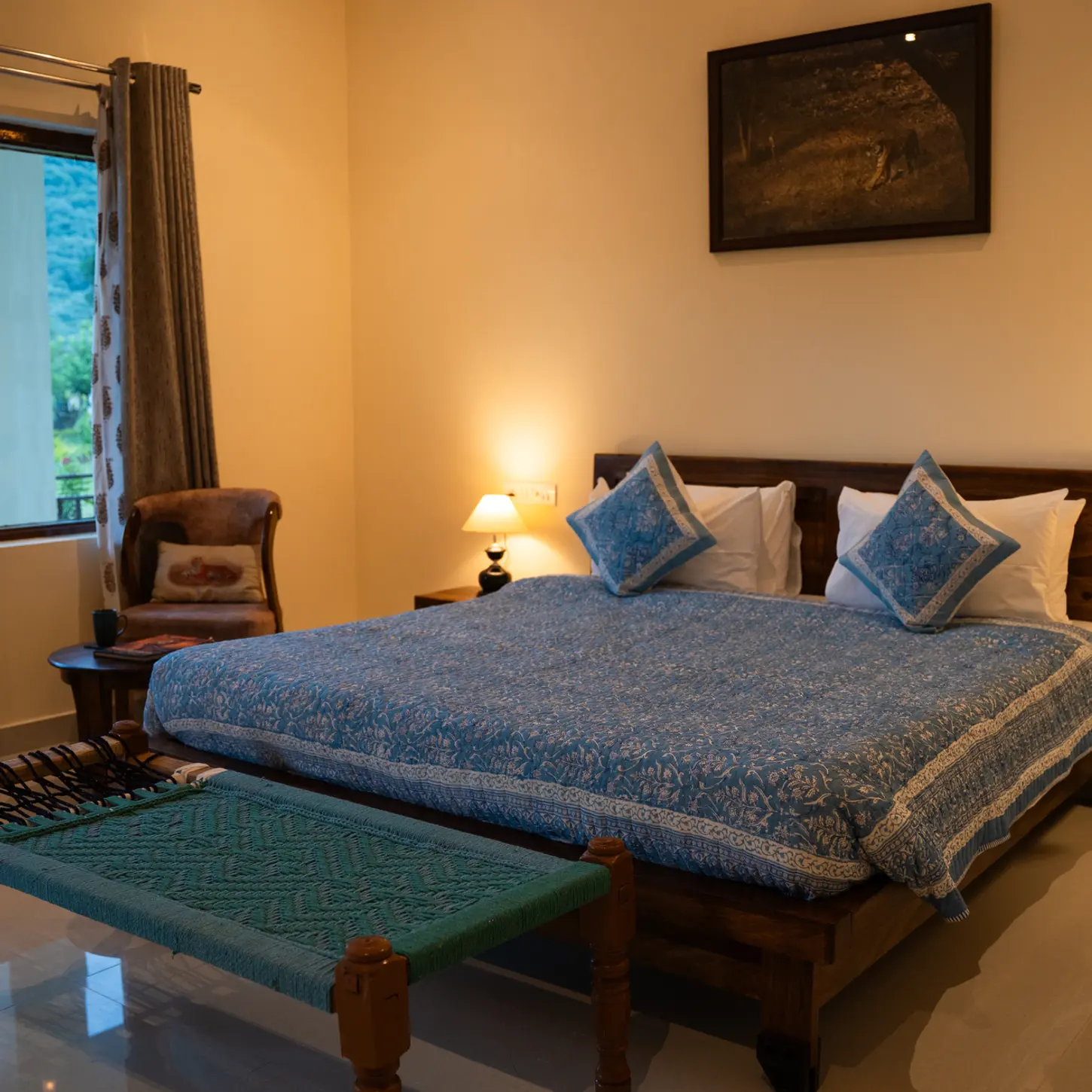 At Baaghini, our rooms are a perfect blend of rustic charm and modern comfort, designed to immerse you in the tranquillity of Ranthambore. Each space features elegant interiors, plush bedding, and thoughtful amenities to ensure a restful stay. Wake up to nature's serenity and unwind in your private haven.